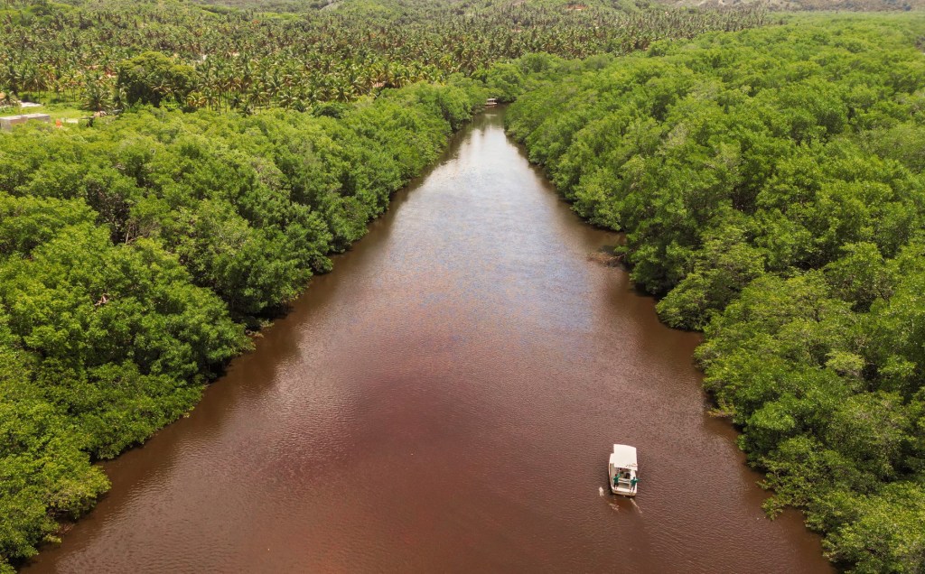 Esta zona faz parte de uma reserva extractivista, uma área protegida que permite às comunidades tradicionais locais manterem os seus modos de vida. Alyson, de 26 anos, nasceu aqui, filho de uma família de pescadores. Há dez anos, partiu para formar-se em técnico de agro-pecuária e depois biologia, já na universidade. Em 2019, regressou a casa para criar a Ecoboat, um projecto “pioneiro em passeio ecológico” e a primeira iniciativa turística nesta região lagunar. Numa zona em que a maioria “sobrevive directamente da pesca”, onde a incerteza da profissão obriga tantos a emigrar para “outra região do Estado ou do país para poder trabalhar”, Alyson quer “mostrar que existem outras possibilidades para sobreviver aqui de forma consciente”.