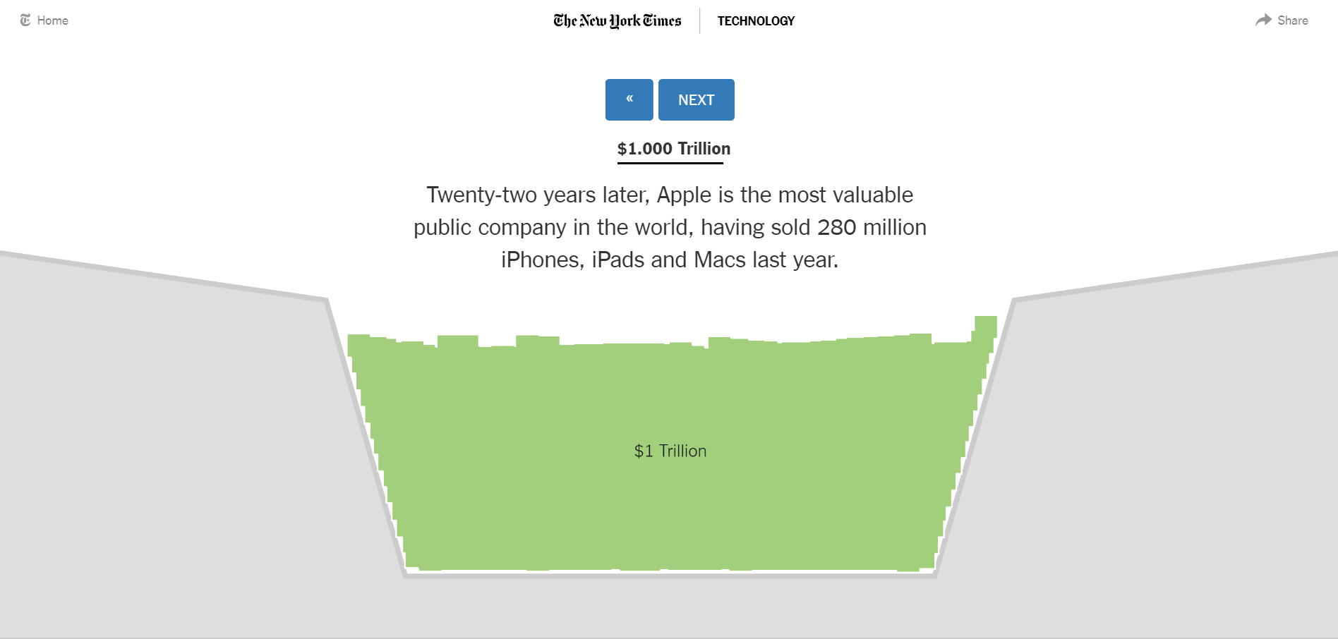 Apple’s Value Hit $1 Trillion. Add Disney to Bank of America and … You’re Halfway There, By Jon Huang, Karl Russell and Jack Nicas, The New York Times